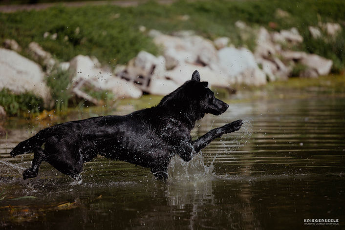 Our Bria came to us just before her second birthday to be the foundation of Kriegerseele. We chose her for her temperament, health results, and lineage. Bria is a super fun dog to work with - she is very fast and will do anything for her ball. She has high prey drive and medium-high food drive. She is extremely loyal to me and aloof to strangers. She learns new behaviors very quickly, making her a blast to train. When we aren't working towards IGP titles, Bria enjoys hiking, jumping into ponds/lakes for her ball, playing with our pack of shepherds, and just generally hanging out with me.